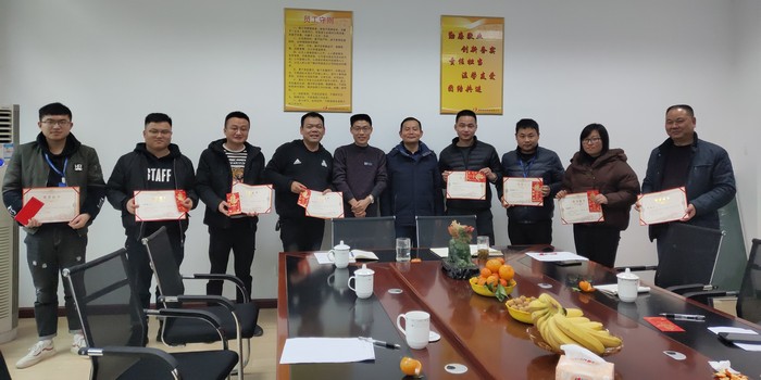 同时,为鼓励先进,宣传典型,发扬成绩,进一步调动公司员工工作积极性和创造性,形成人人争当先进、人人争为公司的发展做贡献的良好氛围,同时也为了更好地体现公司“勤廉敬业、创新务实、责任担当、团结共进”的文化价值理念,不断增强企业的向心力和凝聚力,本次大会对荣获2019年度“优秀员工”与“最佳新人”的八名同志进行了表彰,他们分别是:侯伶俐、周晓龙、余黄海、石君凯、雷玲珍、刘四丽、祝游(优秀员工),徐荣斌(最佳新人)。董事长余锋同志亲自向上述获奖同志颁发了荣誉证书及奖金,并号召全体员工以他们为榜样,学习他们爱岗敬业的优秀品质,勇于接受挑战,为公司的发展做出更大的贡献。