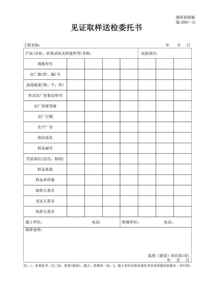 见证取样送检委托书