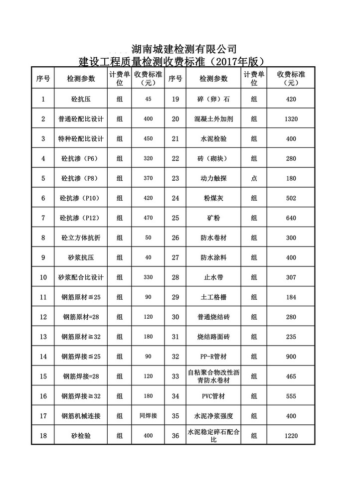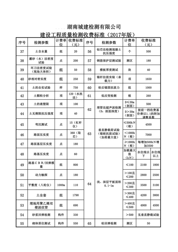 城建检测总收费标准(2017年版)